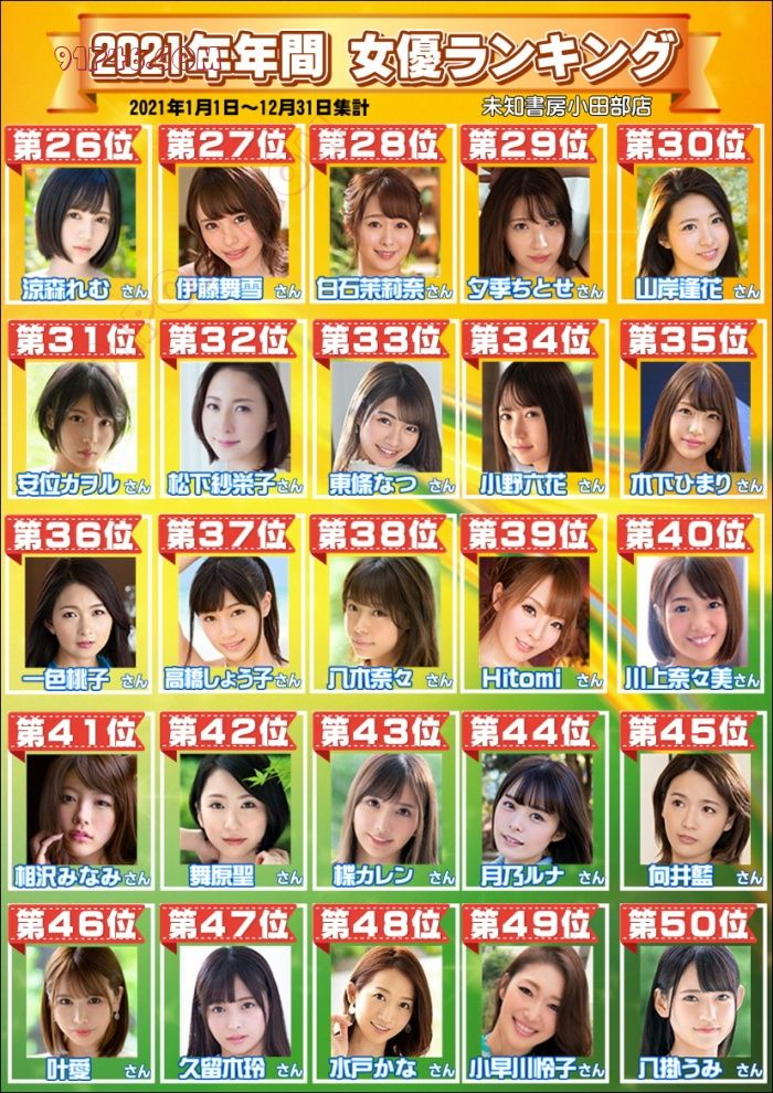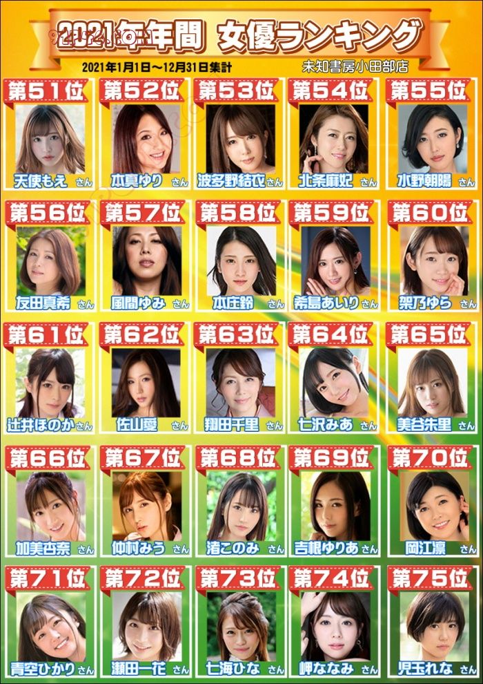 日本国内评选:2021年度AV女优前100名